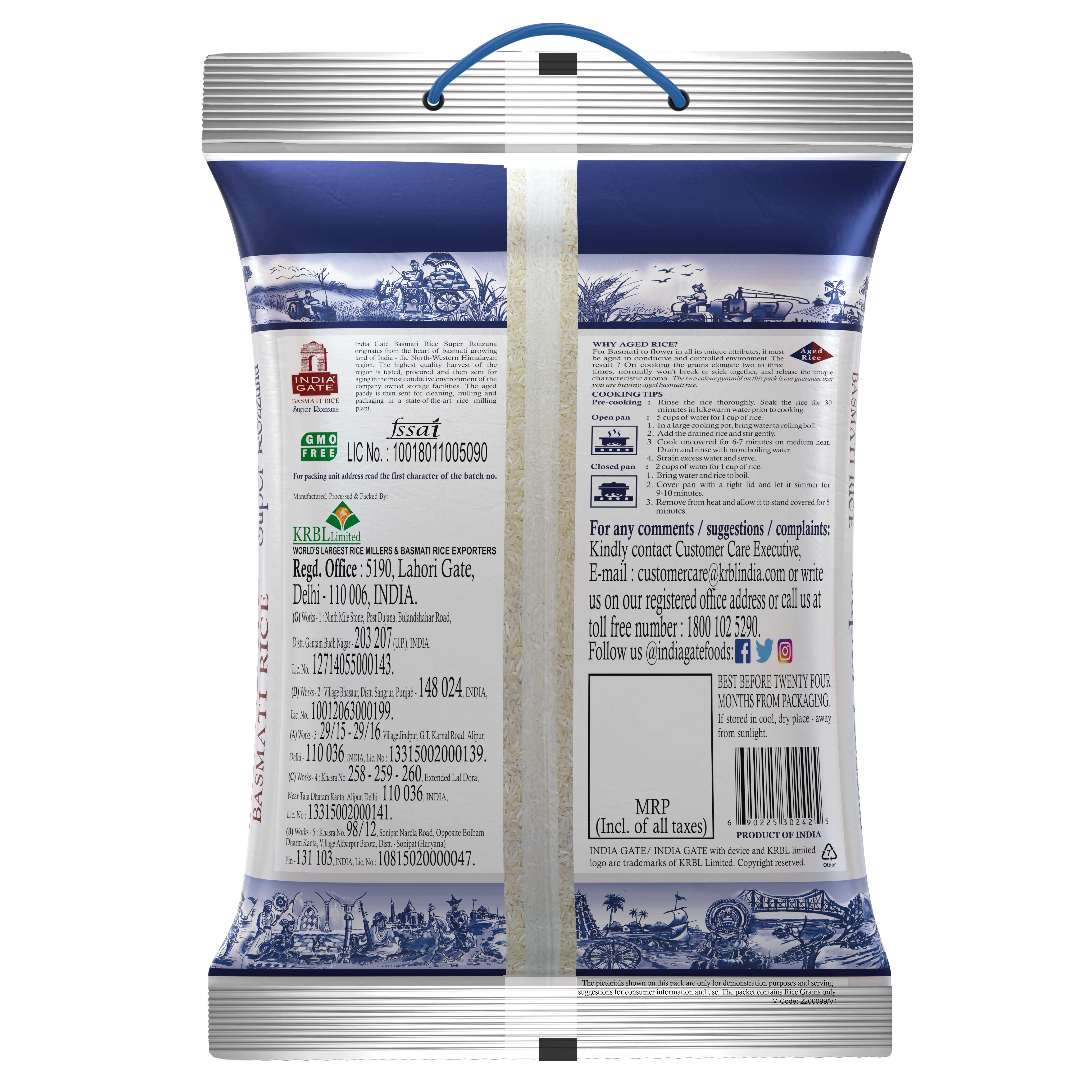 India Gate Super Rozzana Rice is everyday rice that makes each meal memorable. It is ideal for people who like to include rice in their daily meal consumption. Aromatic, flavourful, and defined by its distinctly long and slender grains, India Gate Super Rozzana Rice turns every meal into comfort food. No matter what you’re in the mood for, India Gate Super Rozzana Rice leaves you feeling satisfied and nourished. INDIA GATE is India’s most trusted and largest selling Basmati Rice brand. It has become the preferred brand of choice among consumers and retailers over the years deriving mainly from consistency and quality assurance. India Gate Basmati Rice is aged to perfection which results in better volume, fluffiness, and yield. This aging process also imparts the distinct Basmati aroma and taste to the rice. All India Gate products are produced with international quality standards, cleaned, sorted and packed in superior, hygienic and state-of-the-art facilities, completely untouched by human hands.